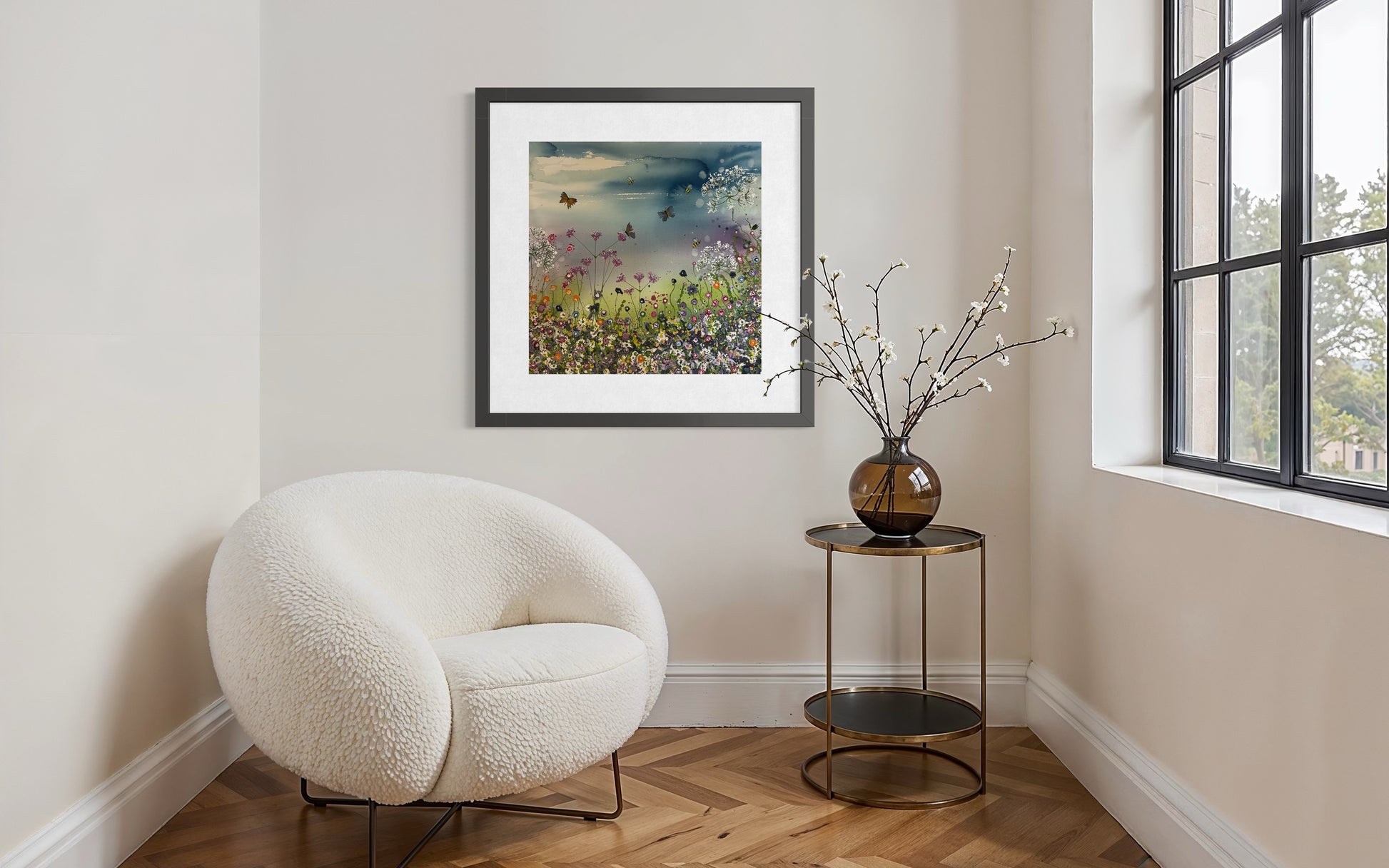 Original watercolour. A vibrant meadow alive with butterflies & bees capturing the essence of Spring.Signed by the artists.Size 455mm x 455mm.
